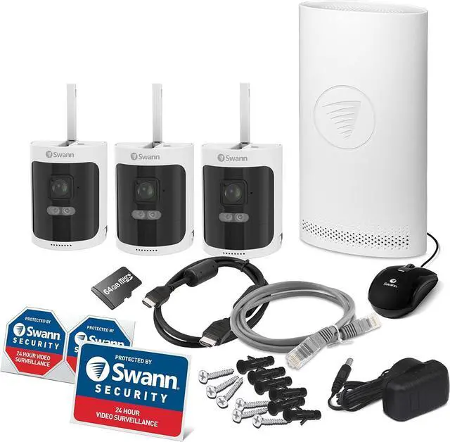 SEE & CONTROL IT ALL ON YOUR PHONE: In this security camera system you can see live video, play back clips, receive alerts, listen & talk back, arm & disarm the siren & lights, & more via the SWANN SECURITY App