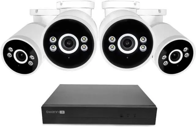 Upgrade your home security with the Swann AdvancedX Wired NVR Security System, featuring a 4 Bullet Camera Kit designed to deliver unmatched clarity and reliability. With 4K Ultra HD resolution, this system captures every detail, from faces to license plates, ensuring nothing goes unnoticed. The cameras come equipped with color night vision and powerful spotlights, illuminating up to 50 feet for crisp, detailed footage even in complete darkness. Thanks to PoE (Power over Ethernet) technology, youll enjoy uninterrupted 24/7 monitoring without relying on Wi-Fi. Advanced motion detection and AI video analytics instantly alert you to people, vehicles, or intrusions, while built-in spotlights and sirens actively deter unwanted activity. With AdvancedX you never miss a thing as recording begins seconds before and goes on till seconds after activity, so you record critical moments. Store months of footage on the included 1TB hard drive and 1-day cloud back up, with optional plans starting at just $3.99/month. Stream live video or review recordings effortlessly via the Swann Security app or your TV using HDMI. With no hidden fees and everything you need included, setup is simple and stress-free. Protect your home with confidence and clarity.