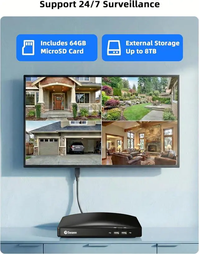 Enhanced Color Night Vision: See full color at night. Unlike typical infrared cameras, this system has built-in spotlights that capture full-color video in low light up to 32ft (10m), letting you see important details like clothing colors and vehicle paint even at night.