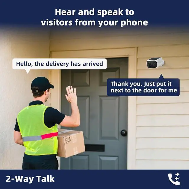 Smart Alerts & Two-Way AudioReceive reliable notifications with intelligent heat and motion detection. Communicate in real-time using the built-in two-way audiodeter intruders or speak to visitors directly from your phone.