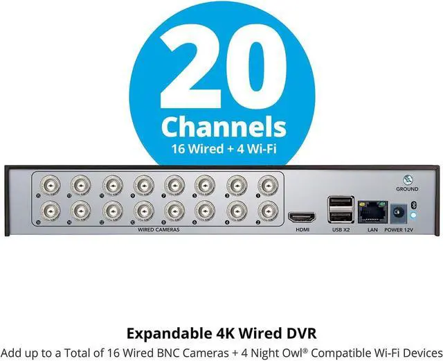 ADD WIRED BNC CAMERAS: Customize your coverage by adding up to 16 compatible Night Owl 2-way audio 4K wired BNC cameras (FTD8 series) to your wired recorder.