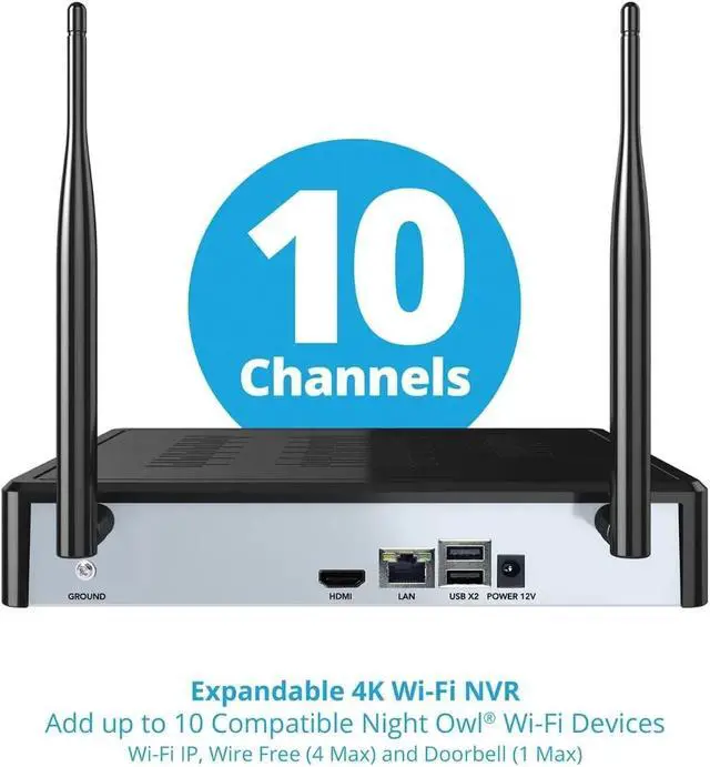 Connects to up 10 compatible Night Owl Wireless Cameras (4 Battery Powered Cameras)