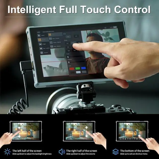 2.[7-inch HD IPS Touch Screen] The FW759 PRO monitor is equipped with a 7-inch 1280*800 HD IPS screen. Make the color reproduction of the monitor more accurate. With a 178° wide viewing Angle, you can enjoy the details of the picture from any Angle.