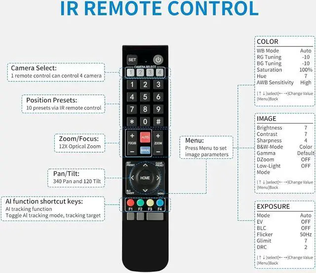 4K and 12X Zoom4K ultra high-definition 30fps resolution, and with 8 bit color depth, good color reproduction. 12x optical zoom lens and 70.9°wide angle lens, clearly capture the image.