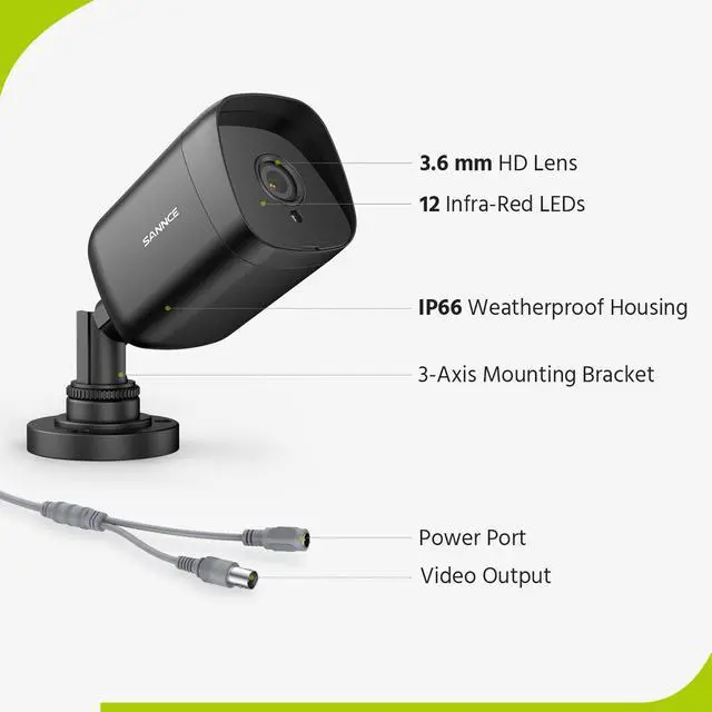 The CCTV surveillance camera adopts IP66 weatherproof housing, able to withstand the extreme hot/cold atmospheres (-40 °F 140 °F). Install the video security cameras outdoors or indoors without limitation.