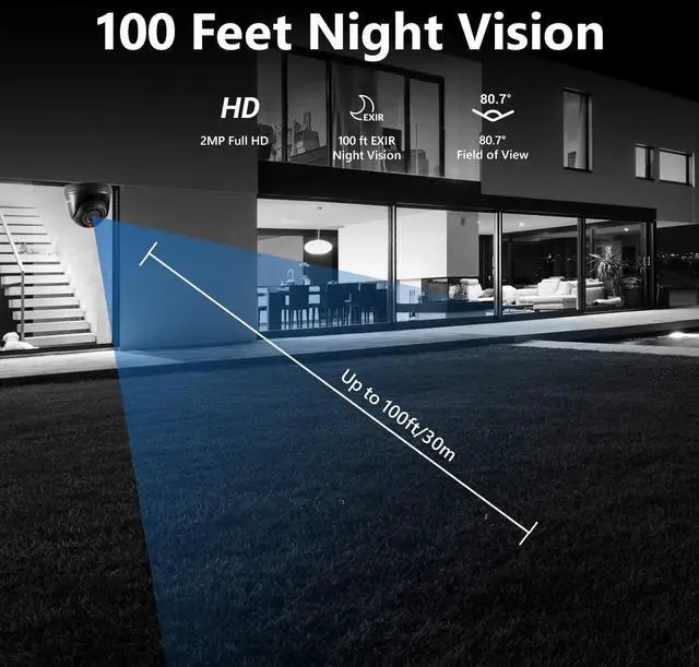 12 built-in IR LEDs with the IR-cut filter turn on automatically to provide enough lighting, in order to capture crystal videos (up to 100 ft) in 0 lux illumination night.