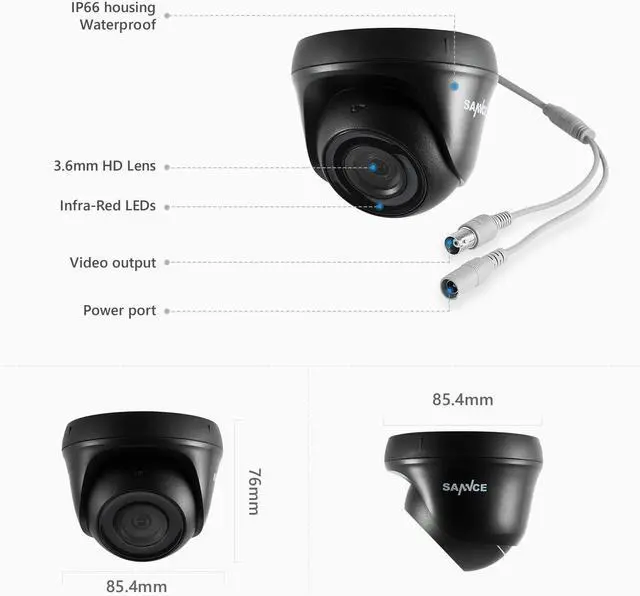 3.6 mm lens is perfect for covering wide-range areas. You are able to monitor your foyers, warehouses, front or back doors/yards, gardens, parking lots, etc. with just a camera.