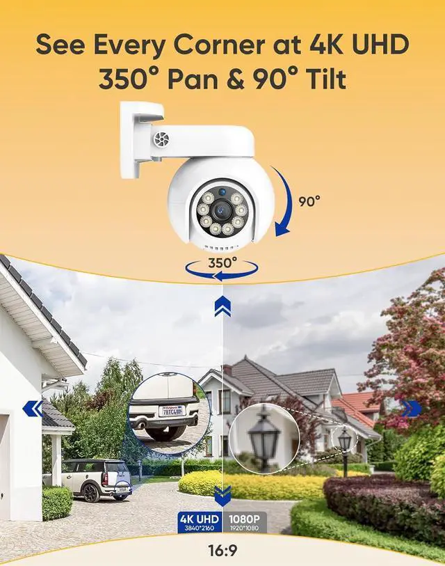 The Ultimate 4K at Every Angle Panning the camera up to 350° and tilting up to 90° to cover corners you concern in 8MP high resolution. The field of view is even wider thanks to the 2.8mm lens and the image perfectly fits the 16:9 aspect ratio on your monitor.