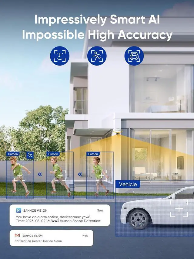 Auto Detecting and Tracking The pan tilt camera is equipped with advanced features like precise detection of humans and vehicles, automatic tracking, and capturing facial snapshots, making it serve as a reliable security guard for residential and commercial properties. (Compatible with N98PBD/N96PBK to enable the mentioned functions.)