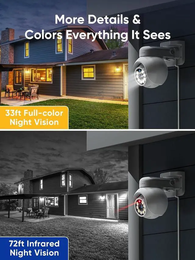 Colorize the Night to See Clearer Featuring 8 premium LEDs, this security camera offers you to switch between a 33ft full-color night vision and a 72ft infrared night vision. IP66 weatherproof enables it boasts against harsh weather. Power it by PoE or DC 12V both work.