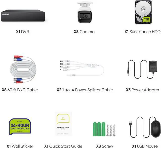 HDMI and VGA OutputBoth HDMI and VGA outputs are available on our DVR. Youre free to choose either of them, so just get a TV or HD monitor and enjoy crisp and clear video on big screen and start the real-time monitoring; Self-Adaptive 5-in-1 DVR: Using one DVR, you can enjoy four modes including normal analog, AHD, TVI,CVI and IPC
