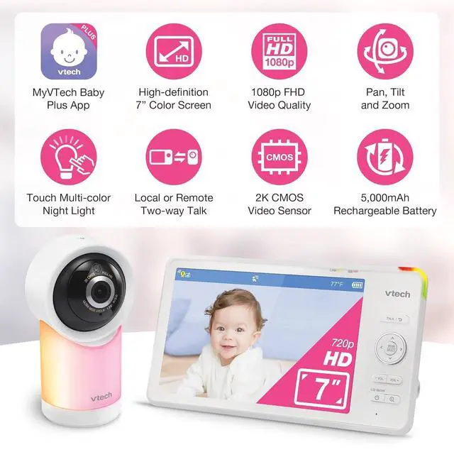 [FREE APP WITH LIVE REMOTE ACCESS] - Stay connected wherever you are. Use your smartphone or tablet to view, listen, and talk to your baby in real time - even when you're away from home - via the MyVTech Baby Plus app
