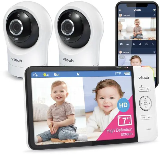 [Plug & Play Direct Mode. Remote Monitoring on iOS & Android Devices] - This advanced monitor system is configured for local monitoring right out of the box. In the same time, enjoy the remotely listening and viewing on multiple devices, even outside the home. This system allows for remote viewing via internet through the MyVTech Baby Pro app with no fees or monthly subscriptions.