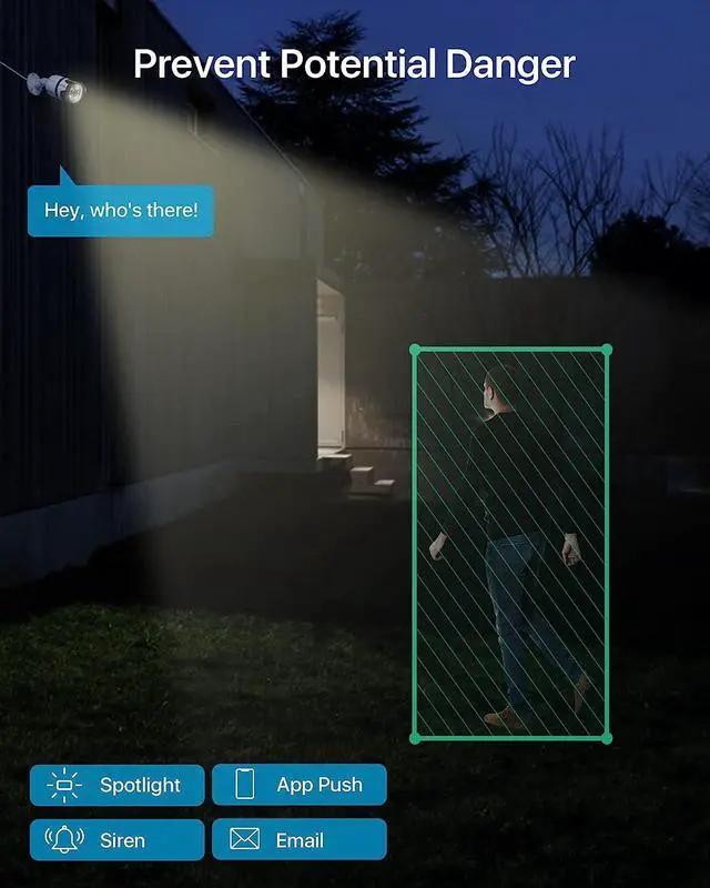 (2). [ Sound & Light Alerts, Two Way Audio ] __ The ZOSI camera is equipped with motion-activated white LED warning lights and a siren that can be triggered manually from your phone or automatically by human motion events. When motion is detected, instant notifications and email alerts with screenshots are sent directly to your smartphone. The built-in speaker and microphone enable convenient 2-way audio communication.
