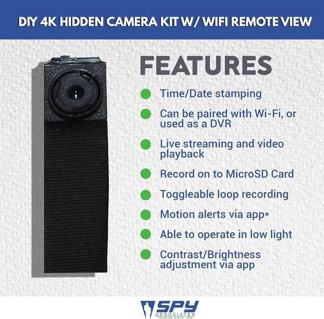 SECURITY CAMERA: Our HD hidden spy camera can stream 4k live video remotely in complete darkness using a free included app for your phone or tablet. This nanny cam is a perfect and discreet way to protect your property and keep an eye on your loved ones even at night. With motion detection recording to a hidden SD card, you won't miss a thing.