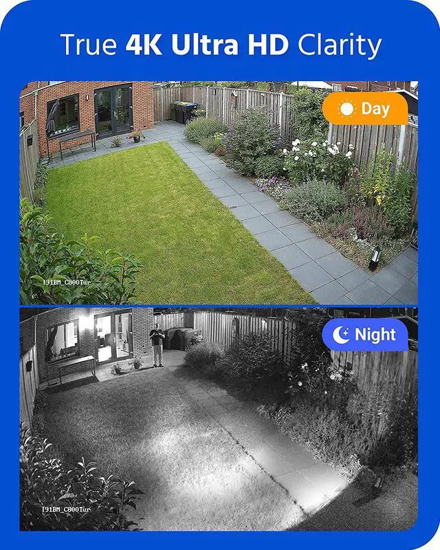 The 8-channel 4-camera PoE system delivers true 4K UHD clarity & 100 ft night vision with the Sony sensor, true WDR, 3D DNR. 2.8 mm lens offers 123° FoV for ultra wide-angle coverage.