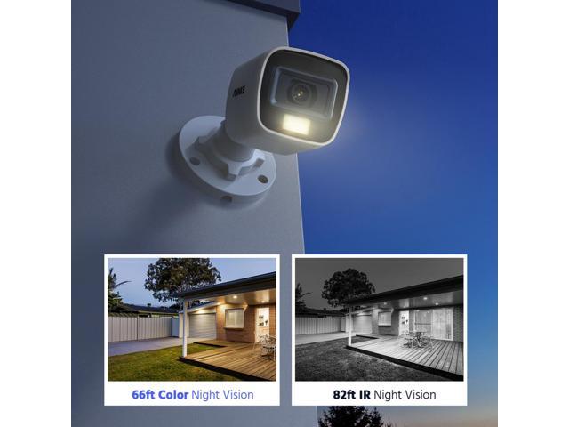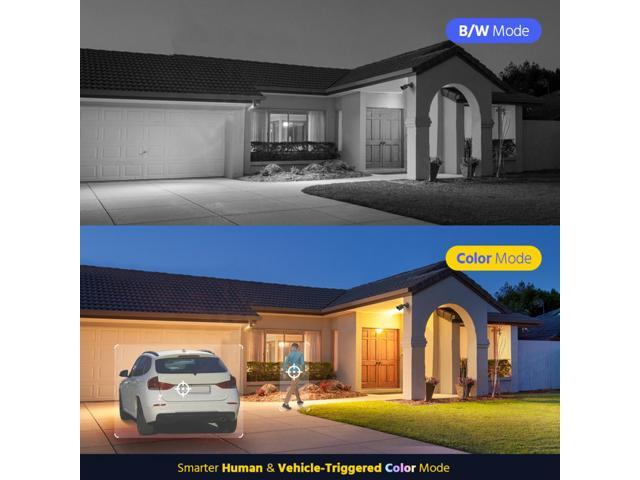 - Intelligent dual light camera: This wired security camera system has three night vision functions to choose from: smart light, white light, and infrared night vision. The intelligent lighting mode is the default mode. Once a person/vehicle is detected, the B&W night vision system will turn into color