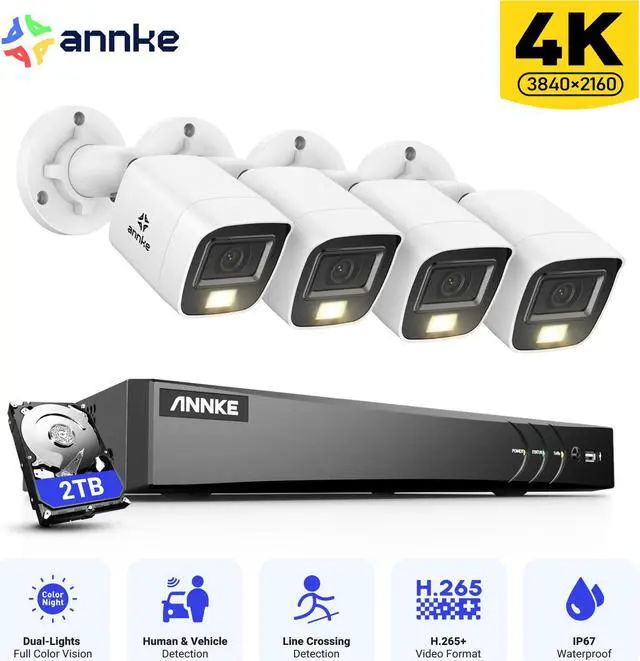 ANNKE 4K Security Camera System, 8CH 8MP AI DVR with Human & Vehicle Detection, 2TB HDD and 4x4K IP67 Bullet Home & Surveillance Cameras, Easy Remote View, Smart Dual Light