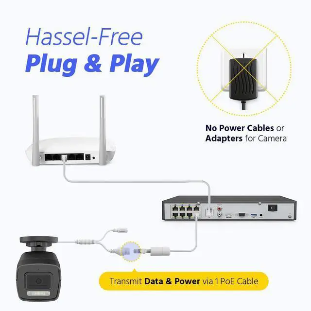 · Up to 8 channel IP cameras can be connected with built-in PoE inputs