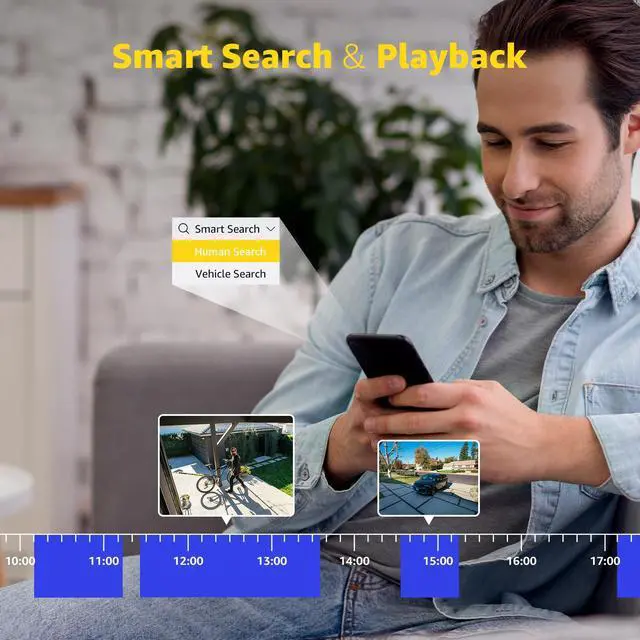 • By setting up pedestrian and vehicle detection, motion detection alerts will only be received when the vehicle is in the frame. Try to minimize unnecessary alarms caused by insects, animals, leaves, etc. Easily access and control the system remotely through 3G/4G/5G or smartphones, tablets, and computers.