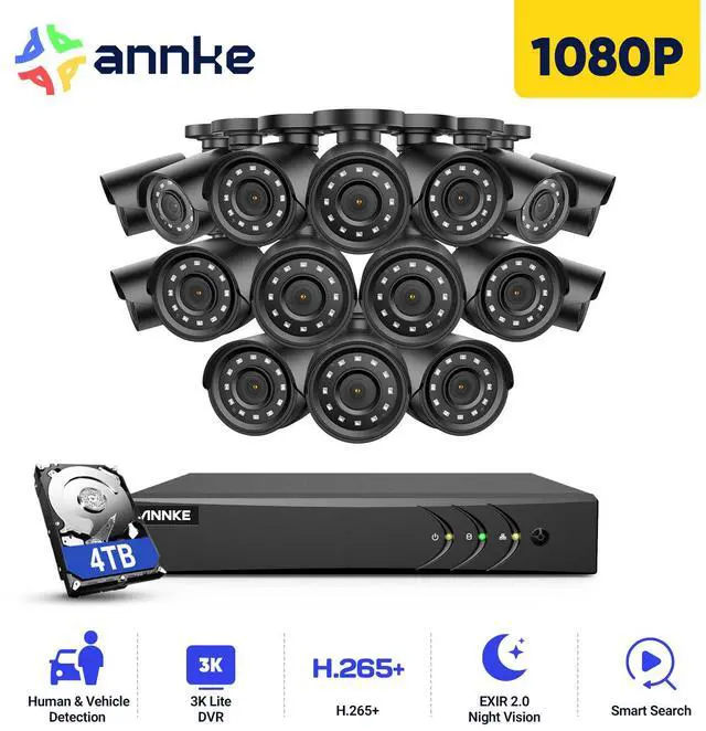 ANNKE 16CH 3K Lite FHD AI Surveillance Security Camera System with 4TB HDD and 16X 2MP Outdoor Weatherproof CCTV Cameras, Smart Human Vehicle Detection, Day/Night Vision, Smartphone Remote View