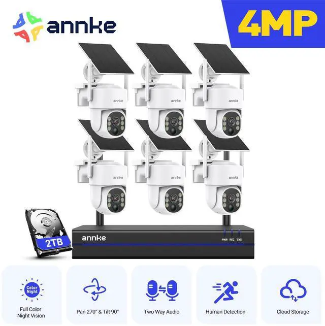 ANNKE 4MP Ultra HD 16 Channel 6 Cameras Wireless NVR Security System, 2.4/5.8G Dual-Band WiFi, Human Motion Detection, Two-Way Audio, Night Vision, Works with Alexa, 2TB HDD