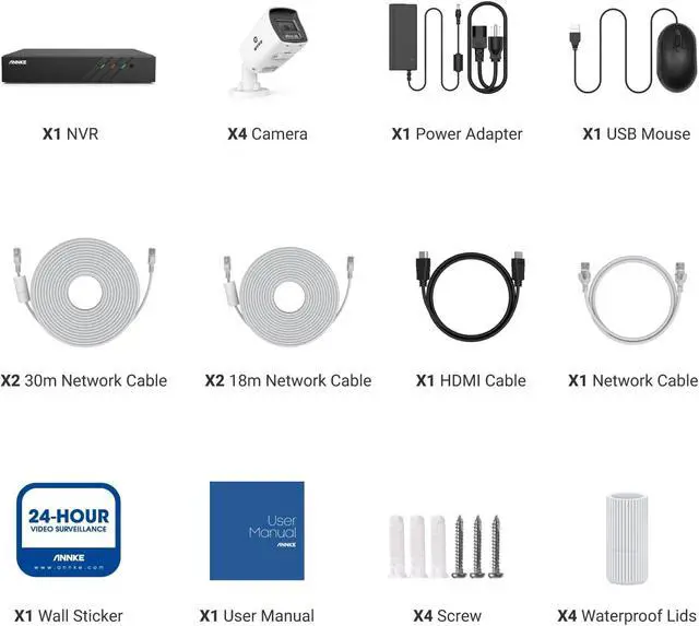 ANNKE 3K 8CH PoE Security Camera System, H.265+ 8CH NVR, 4pcs Surveillance Outdoor PoE Camera, 2-Way Audio, 512GB SD Card Slot,Human&Vehicle Detection, 3K@20fps, Remote AccessFlash Alarm(No HDD)