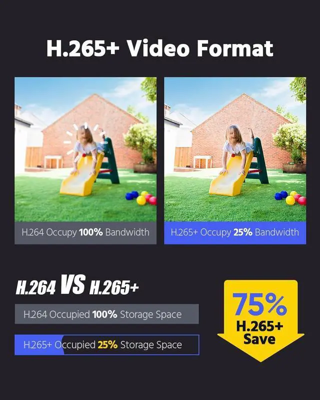 Advanced H.265+ Video Compression: 8CH PoE NVR uses H.265+ coding to offer the faster & smoother stream experience than H.265/H.264+/H.264 systems. It enables a longer video recording time and reduces the storage capacity, which saves your budget on buying extra HDDs.