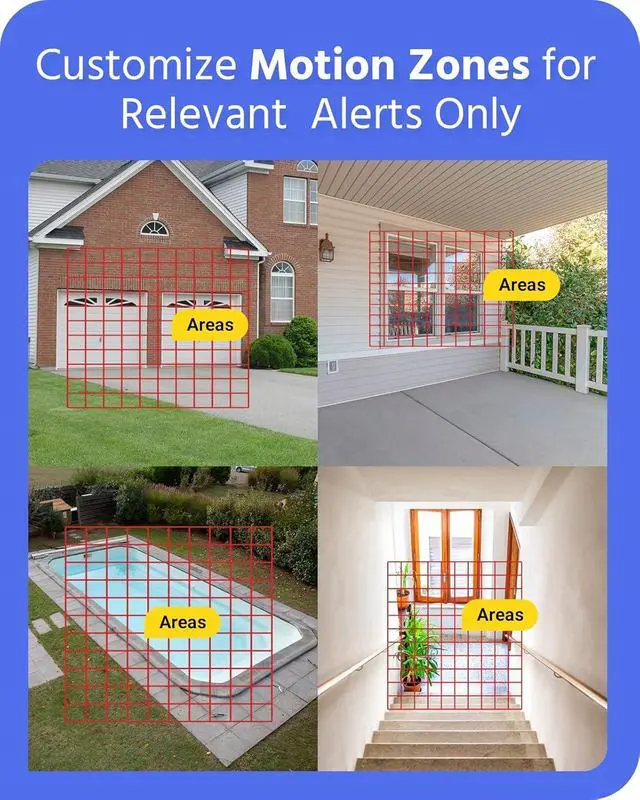 Remote Access in your HandsAccess the security IP camera unlimitedly via your phones, PCs, tablets to check your home or office wherever you are. Customize the detection areas you care most to get accurate app pushes or alerts when motions are detected in the marked areas.