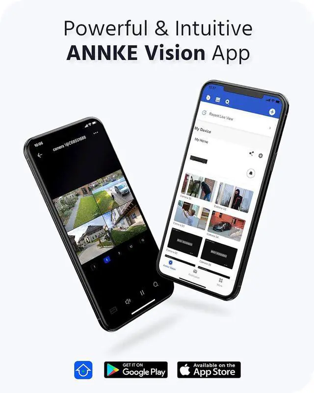 DIY Installation The ANNKE 5MP IP security system comes with all the accessories (including 60 ft/100 ft cat5e cables) for installation. Cut down extra spending on accessories. Just connect the PoE camera to an NVR with a network cable for both data & power transmission. True Plug and Play setup. This NVR can support up to 4K cameras, You can DIY upscale to 4K, just replace the 5MP camera with a 4K camera.