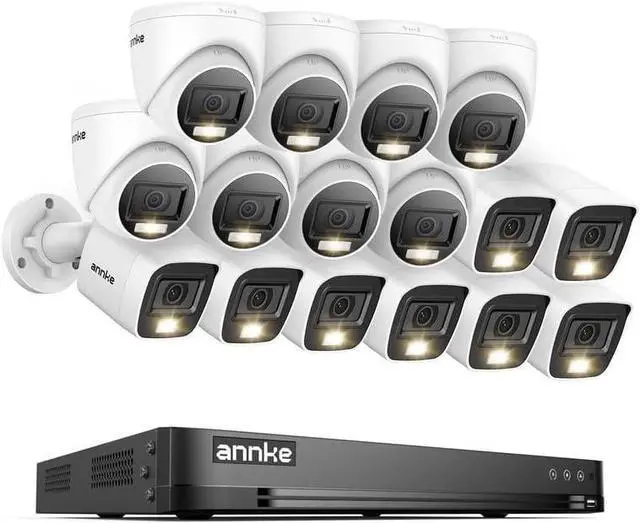 ANNKE 2MP Security Camera System, 32CH 3K Lite DVR Recorder with AI Motion Detection, 8X 1080P Add-on Wired Bullet Cams, 8X 2MP Turret Cams, Smart Dual Light, IP67, 3.6mm Lens, NO Hard Drive, White