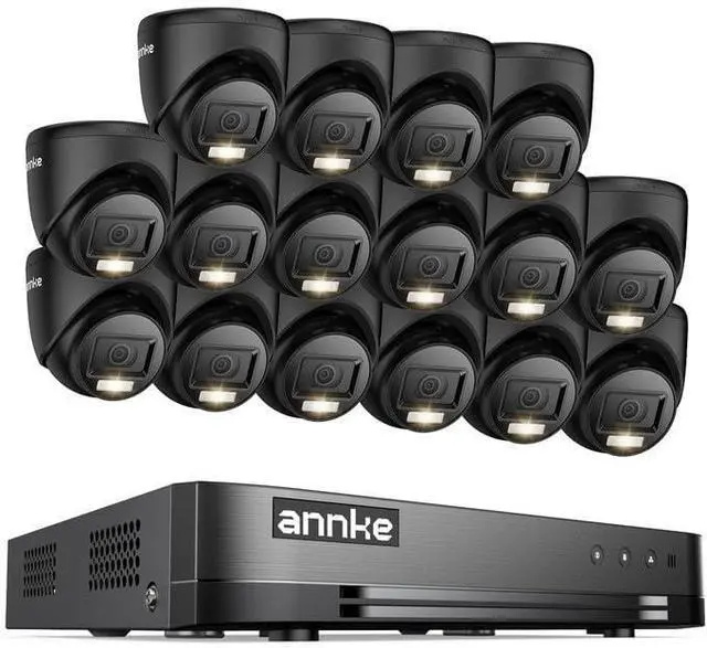 ANNKE 2MP Security Camera System, 16CH 2MP Lite DVR Recorder with AI Motion Detection, 16x 1080P (1920×1080) Add-on Wired Turret Black Cams with Smart Dual Light, IP67, 3.6mm Lens, No Hard Drive
