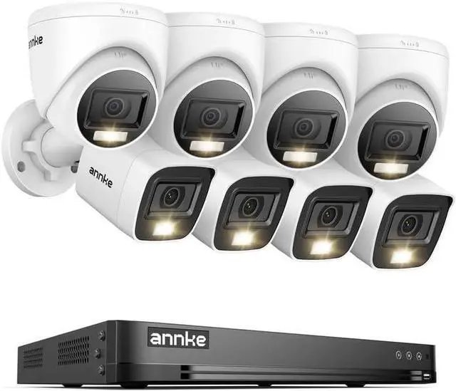 ANNKE 2MP Security Camera System, 32CH 3K Lite DVR Recorder with AI Motion Detection, 4X 1080P Add-on Wired Bullet Cams, 4X 2MP Turret Cams, Smart Dual Light, IP67, 3.6mm Lens, NO Hard Drive, White