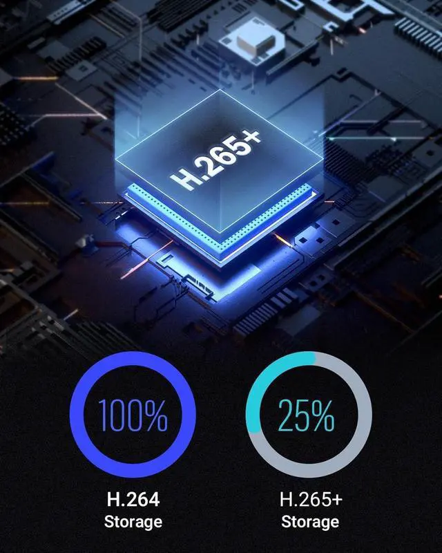 Reliable 24/7 Continuous RecordingBy installing a surveillance hard drive disk (NOT Included), providing 24/7 surveillance recording for you. Upgraded H.265+ saves more storage space and uses less bandwidth, recording videos longer and smoother viewing.