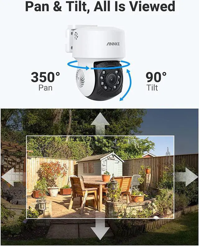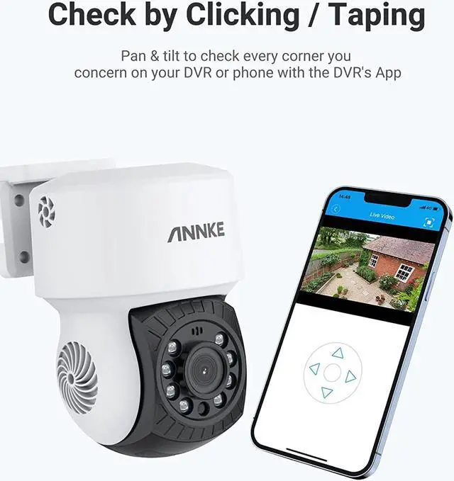 360° All-Around SecurityFeaturing 350° pan and 90° tilt, this camera can check a wider range of area, while traditional ones are pointed at a fixed angle. And it's more convenient that you may pan and tilt the camera via DVR or the DVR's app on your phone.