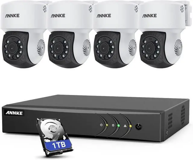 ANNKE 5MP Lite Wired H.265+ 8CH Surveillance DVR and 4X 1080p AHD Outdoor CCTV PT Camera with with 350°pan and 90°tilt, AI Human/Vehicle Detection, 100 ft Night Vision, Remote Access, 2TB Hard Drive