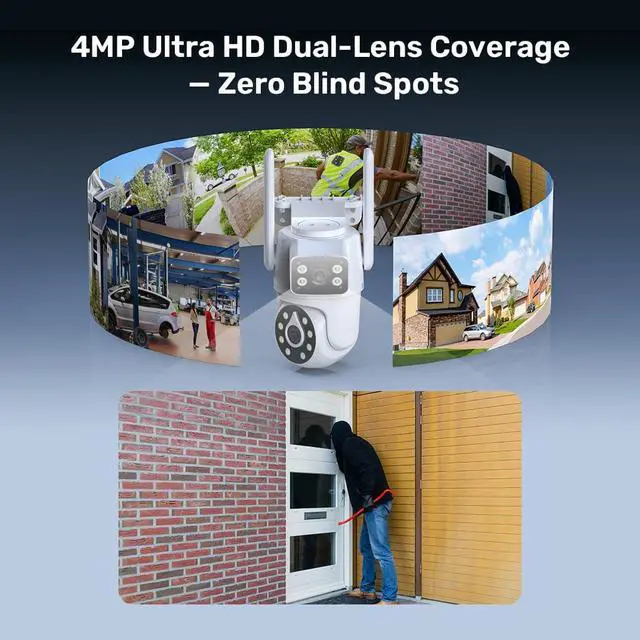 2.5K Dual-Lens Panoramic SurveillanceExperience comprehensive monitoring with the 2.5K dual-lens system. Its panoramic view, featuring a 75° horizontal and 41° vertical angle, covers large areas, eliminating blind spots.
