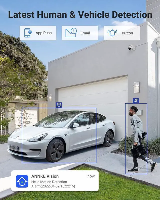 Accurate Human & Vehicle DetectionThe motion detection 2.0 can identify and swiftly extract primary objects such as people and vehicles with up to 99% great precision. And the system sends prompt notifications and email alerts to help respond quickly in real time.