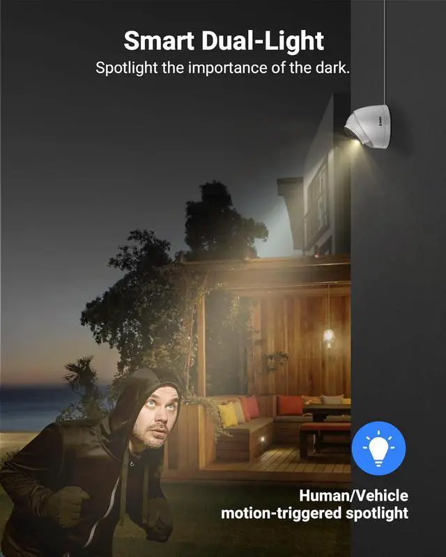Exclusive Smart Night ModeThe IP cameras go beyond the conventional 66ft color night vision and 100ft IR night vision capabilities. They now possess an intelligent night mode that transitions to color night vision upon detection of a human, effectively deterring potential intruders.