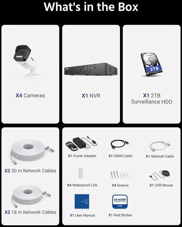 Complete Surveillance System - Includes 8CH NVR with 2TB hard drive and 4 IP PoE cameras. Easy to set up and expandable up to 8 cameras for enhanced coverage.