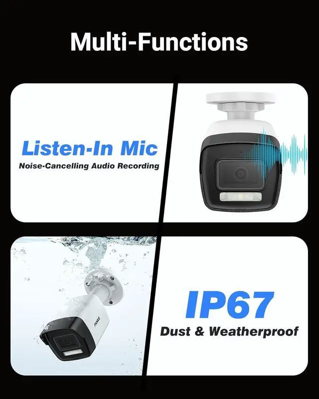 IP67 Waterproof Rating & Audio - Built to withstand various weather conditions with an IP67 waterproof rating. Highly sensitive microphone supports Listen-In Audio for real-time monitoring with enhanced audio quality.
