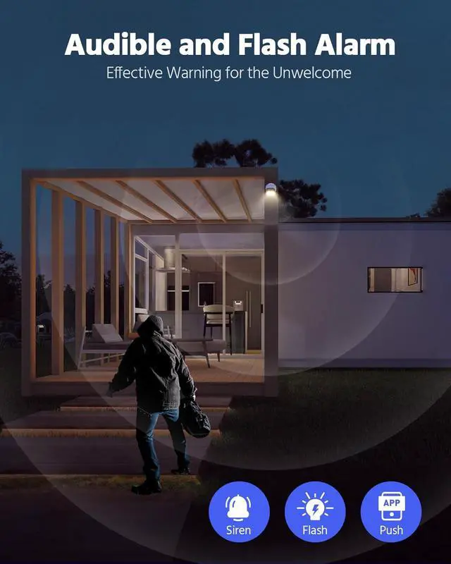 Human/Vehicle Detection With Audible & Flash Alarms This IP CCTV camera can detect and extract key objects like human & vehicle with up to 99% accuracy. It supports audible&flash alarms, there are 12 default alarm sounds to choose from and you also can record your voice as an alarm, the volume can be adjusted up to 95dB and meanwhile, the flashlight alarms can help you scare the intruders away.