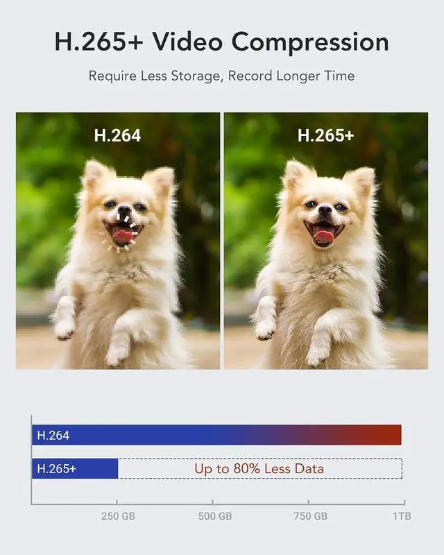 5MP Super HD & 100 ft Night VisionSee enhanced 2K 5MP Super HD picture quality, nearly triple the resolution than 1080p Full HD. Our IR LEDs deliver unparalleled performance in the dark, allowing you to clearly see up to 100 ft away.