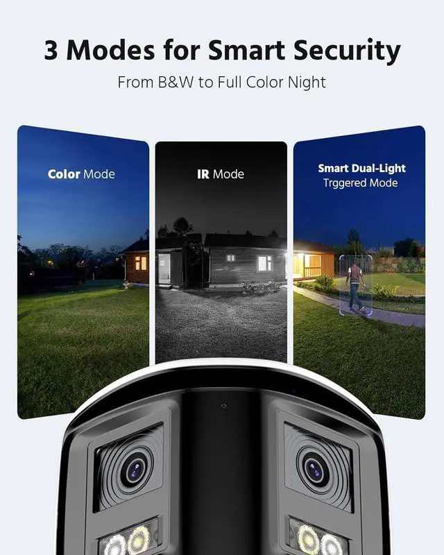 Flawless 180°Panorama & 4K UHD: The dual-lens security camera delivers a 180°panoramic view, eliminating blind spots for complete security. The 1/2.5" BSI sensor and F1.6 lens ensure 4K UHD footage is captured at 20fps all day.