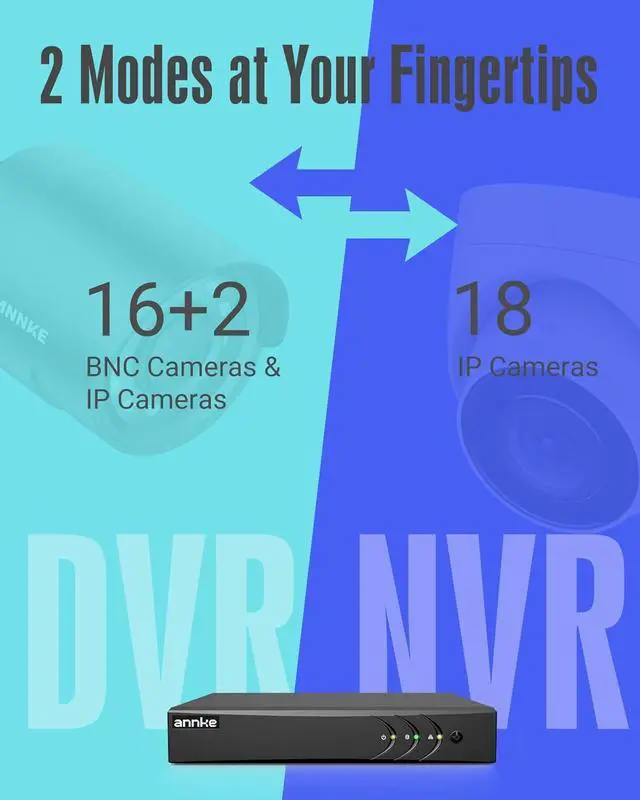 5-in-1 Hybrid DVR The expandable hybrid digital video recorder, combing the features of DVR/NVR/HVR, supports up to 16 pcs TVI, AHD, CVI, CVBS & extra 2 IP cameras. So, you have full-range security camera choices for your property. Add any camera type you want to the DVR for seamless integration.