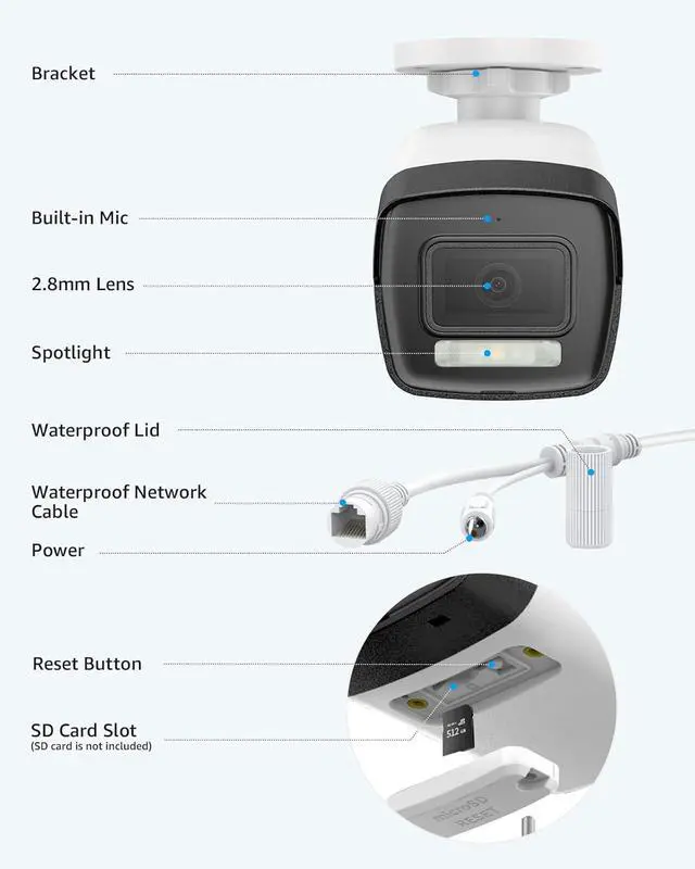 Advanced H.265+ Video Format Intriguing Human&Vehicle Detection Full Protection of Your Privacy Built-in TF Card Slot, Up to 512GB Storage 24/7 Continuous Recording Motion Detection Recording Scheduled Recording Cyclical Recording