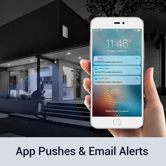 Work with Alex and Smart Motion AlertsAccess the whole system remotely by connecting it to an Alexa device for a hands-free control way. Get instant app pushes and email alerts upon there are motion events. Record videos and audio simultaneously for vivid video recording instead of just silent boring footage.