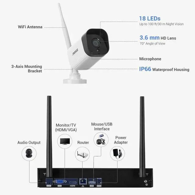 3MP Super HD VideoThe 8CH wireless video security system can work perfectly with the 1296P bullet security cameras; they together deliver true Super HD crystal-clear images, much clearer than 1080p cameras. With 18 infrared LEDs and integrated IR-cut filter, this surveillance camera system.