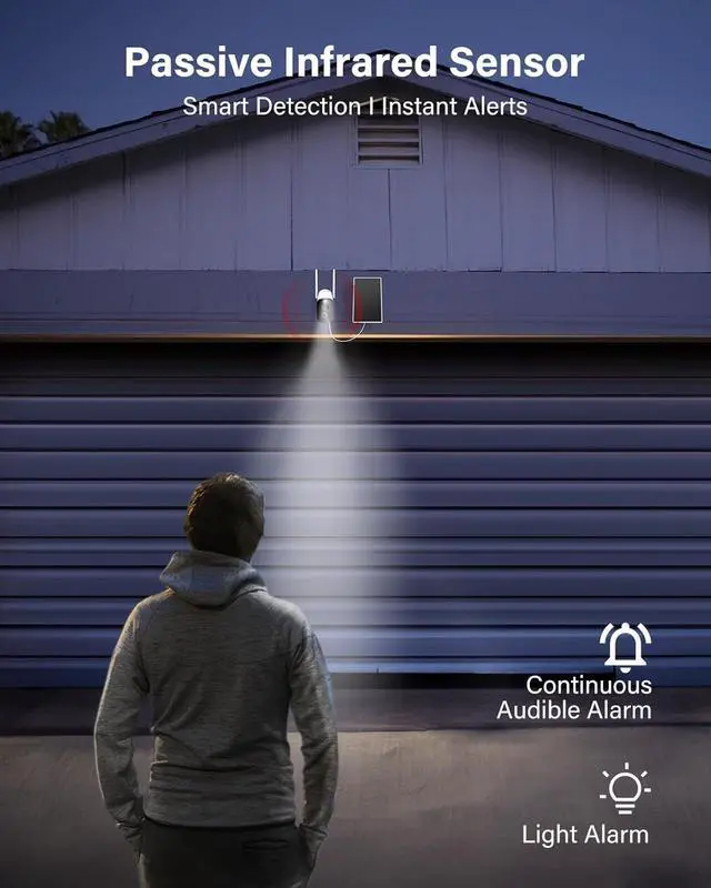 Smarter Detection with Instant AlertsFeaturing PIR motion sensor and human detection technology, the solar camera instantly sends alerts to your phone. Two way audio lets you speak directly with visitors from anywhere.