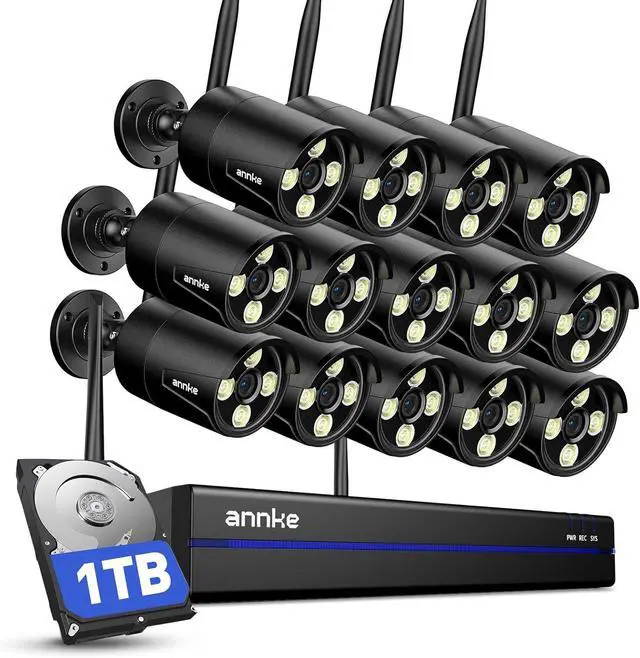 ANNKE Wireless Security Camera System-16CH Expandable 4K Security NVR, 14Pcs 2K Outdoor Cameras, 2-Way Voice, Motion Alert, Weatherproof, Mobile App-Controlled for Indoor/Outdoor Use, 1TB